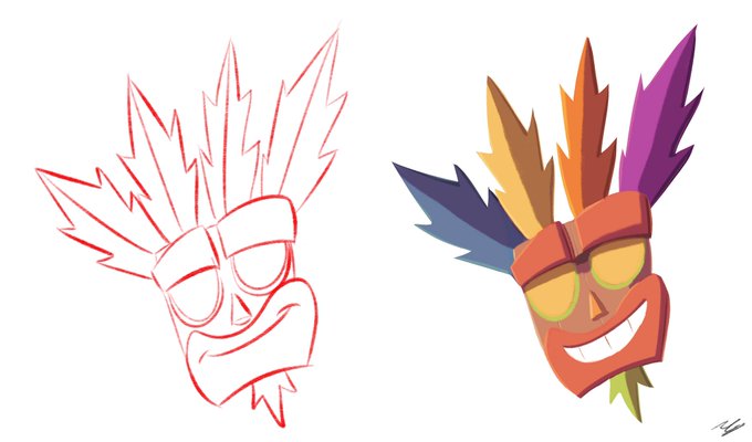 4-#AkuAku #UkaUka Hoy las máscaras místicas son realizadas a lápiz! Idea de motivacion por el gran artista @/MasonEarwood: instagram.com/p/CUJLW0IJCjA/ #Crashtober2021 #Inktober #Inktober2021 #CrashBandicoot #AkuAku #UkaUka