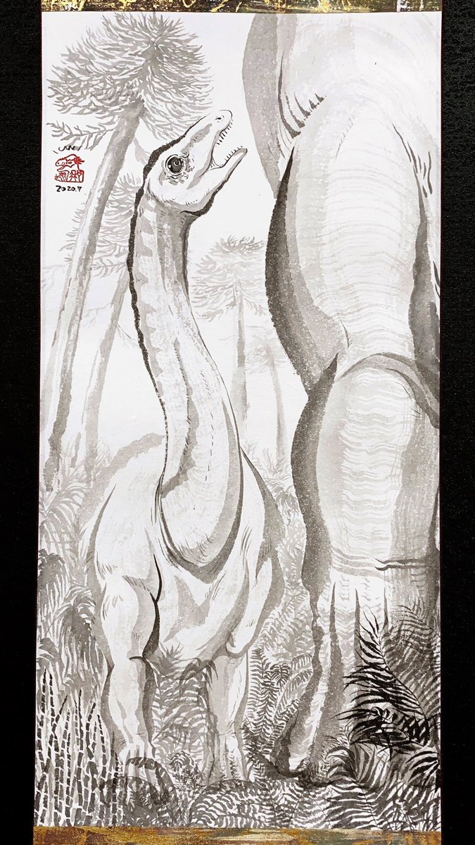 Alamosaurus sanjuanensis🦕 The big Titanosaur from the Ojo Alamo formation in New Mexico. This huge plant eater from the late Cretaceous went extinct nearly 66 MA. In fact, this animal witnessed the end of his world. #paleoart #sauropods #Alamosaurus