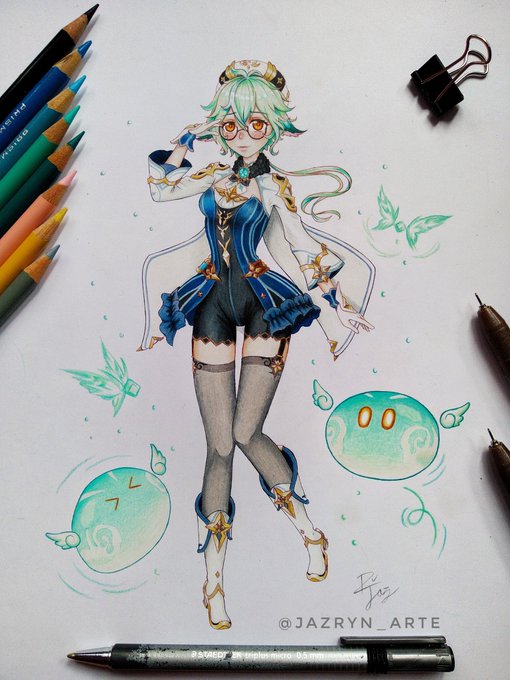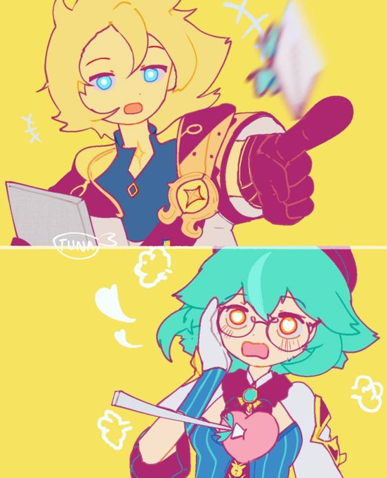 Someone forgot her glasses, thankfully her master is in her rescue! 💚💛 @SSPMAX55 thank you for the idea! #genshinimpactfanart #Sucrose #sucrosegenshin #albedogenshin #albecrose #albedoxsucrose twitter.com/_Killasisa_/st…
