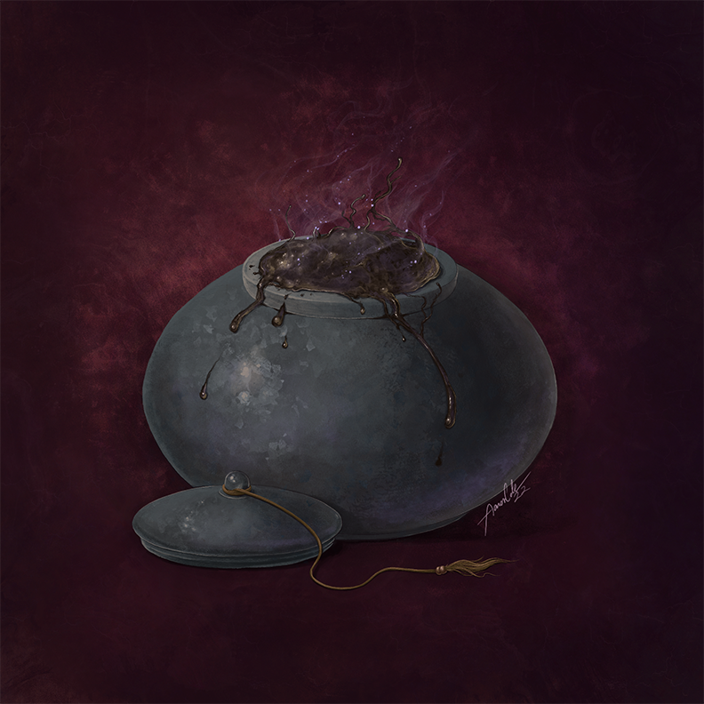 Home Brew: The Corrosive Sludge Pot for Dungeons and Dragons. Throw the remains of oozes on your foes to destroy their equipment, rendering them useless in battle! #dnd5e #dndart #homebrew #alchemy #gameart #darkfantasy #fantasyart