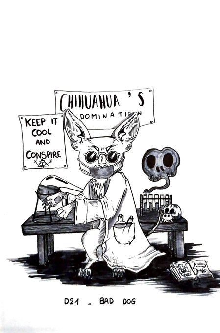 D_21 of inktober : Bad dog (Read next thread) #inktober2022 #inktober #inktoberday21 #animalprotection #baddog #theorieducomplot #cartoon #artwork #chihuahua #alchemy #chihuahuadomination #vibe #drawingmarathon #inkdrawing