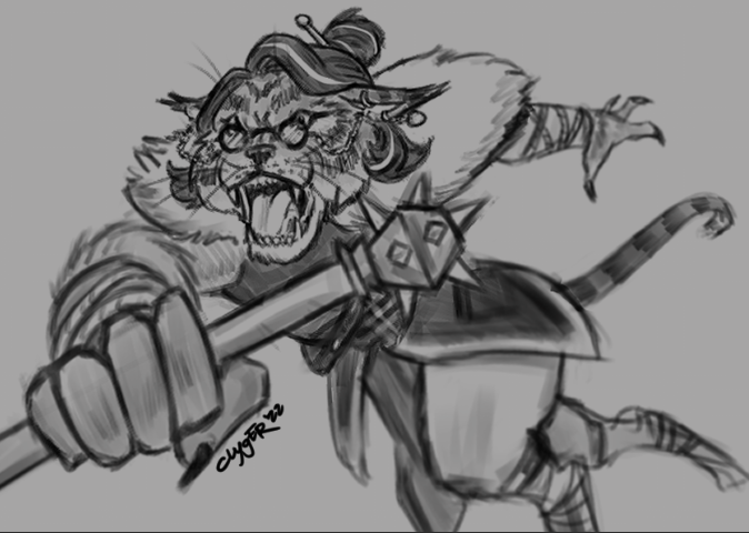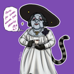 Still tuned in to the Dragonlance Livestream on Twitch and I saw someone say in chat "Granny D" earlier... I JUST HAD TO DRAW IT 😂 So here's a Tabaxi(sorta) Granny D having some warm tea lol #ladydimitrescu #dndart #dnd #maggierobertson #alcinadimitrescu #art #digitalart