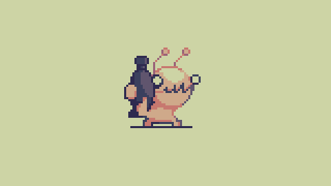 What is better than an #AlienHominid with an #AlienWeapon for #pixel_dailies? 💚🟡 @Pixel_Dailies #fanart for @thebehemoth Inspired by @NotCleverTom cute shapes and outlines. He has an amazing style! #purplemorning8 is the palette #aseprite #pixelart #ドット絵
