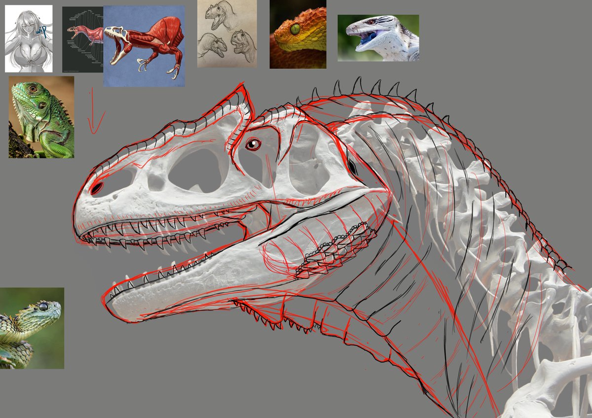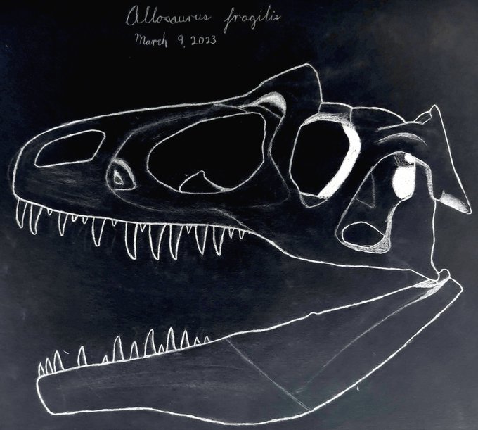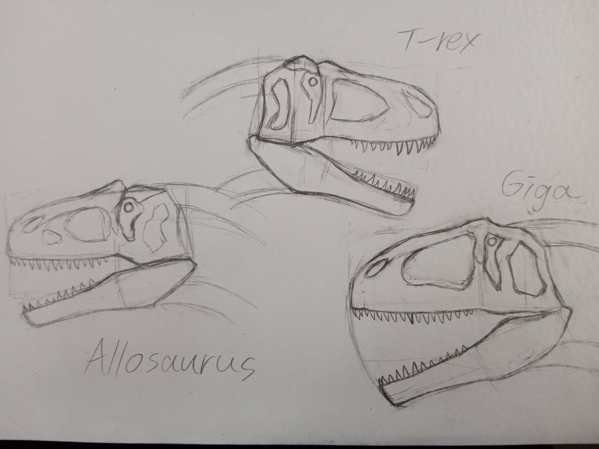 異特龍好久沒畫了,還順便畫了異特龍、暴龍、南巨的頭骨 (Allosaurus, Allosaurus skull, T-rex skull and giga skull sketch ) #paleoart #allosaurus