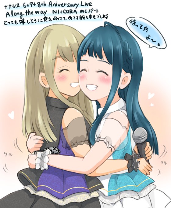 #ナナシス 6+7+8th aniversary Live #Alongtheway Day3ですごく好きだったシーン、NI+CORAのMCパートでお二人がとっても嬉しそうに抱き合っていたシーン✨ゆっきーがうるうるきてるところにもらい泣きしそうでした🥲嬉しさで芸人コンビぽくなってたり、素の可愛いゆっきーが出ていたのも好きでした☺️