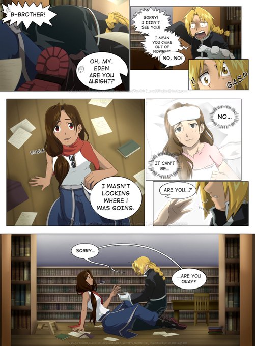 New Commission ♥️ ~ Comic Commission for the awesome @PuzzleEmerald: A Comic based on their FMA Fanfiction with their OC, Eden, meeting Ed🤗 ~ #FMA #FMA03 #FMA2003 #FullmetalAlchemist #AlphonseElric #fmaoc #edwardelricxoc #fmafanart