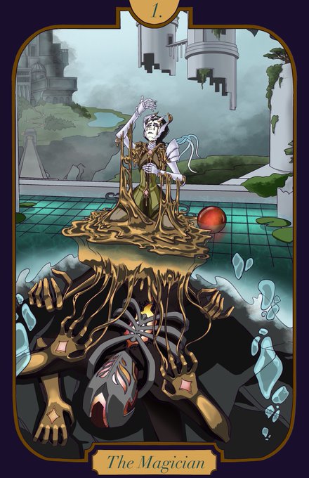 1. The Magician. Visax sinking into the madness of Akkren. #alteredages #dnd #dndart #Tarotcards #Elderitch #Fantasy #fantasyart #ttrpg #rpg #tabletop #Eldergod #oldone #Lovecraft