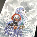 May Amabie help us through difficult times. -Zig Mangaka 01 -Zig Brush Pen White -Zig Mangaka Flexible Fine -Monami Color Twin Brush Sea set -Faber Castell Artist Pitt Pen #inktober #inktober2021 #kuretake_inktober #アマビエ #inktober2021day6 #Amabie #amabiechallenge