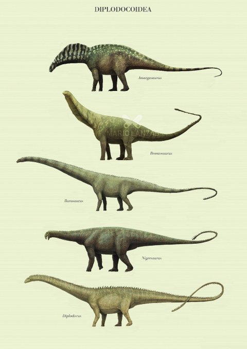 Diplodocoidea.🦕 not in comparative scale #amargasaurus #brotosaurus #barosaurus #diplodocus #nigersaurus #paleoart #sauropoda