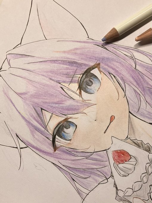 #Ameもち #絵が伸びないから頼むそーた おはようございますm(__)m この間のwip絵、完成しました~! Ameもちさん(@Ame_929)の所の代理ちゃんを描かせていただきました~(*´▽`*)