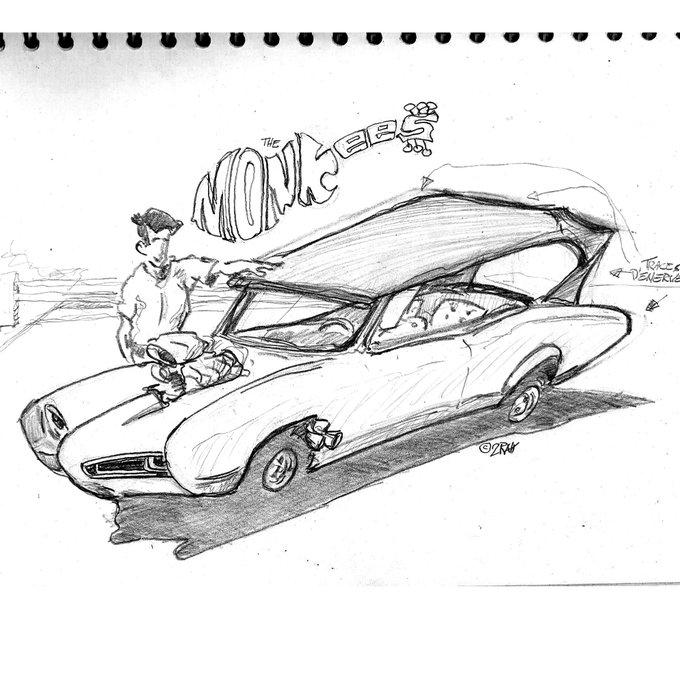 #themonkees and the monkeemobile #wip #croquis #drawing #cardrawing #illustration #customcar #AmericanAuto #americancar #vintage #nostalgia