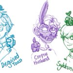 i'm sick, so i decided to roughly draft profiles of 3/4 amigops!! it's out of my comfort zone bc trying a new style + cant draw masculine figures;; rae's next but i'm sick & its 12am have mercy #amigopsfanart #amongus #corpsehusbandfanart #disguisedtoastfanart #SykkunoFanart