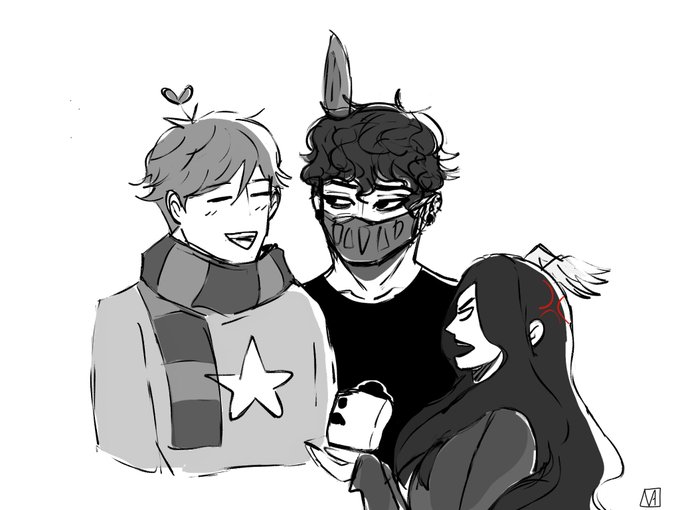 Happy new year and hope your 2023 will be great, here’s some amigops with merch✨ #amigopsfanart #sykkunofanart #valkyraefanart #DisguisedToastfanart #corpsehusbandfanart