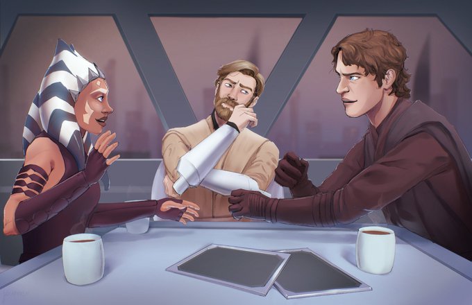 This was a commission! 🤗 Here’s Obi, Anakin and Ahsoka enjoying some downtime during tcw.🥺 #starwarsfanart #obiwankenobi #anakinskywalker #ahsokatano