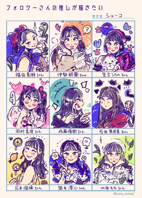 いろんなお顔の造りのかわいいおんなのこを描きたかったのでフォロワーさんの推しハロメンを描きました!能動的に! 推してるフォロワーさんに気に入っていただけたら嬉しいです!楽しかった!! #morningmusume23 #ANGERME #tsubaki_factory #BEYOOOOONDS #ocha_norma #fanart