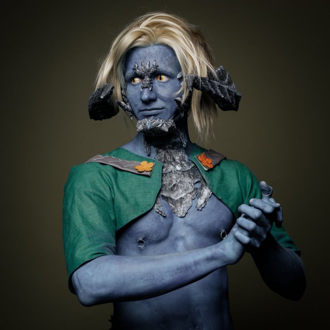 It took 4 hours and 3 palettes of grimas blue and a litre of liquid latex for the scales. Here's a compilation of photos. #cosplay #bodypaint #ffxiv #ffxivcosplay #xaela #buduga #animeconnl shot by @dmvdberg tail and horns by @ExShadow