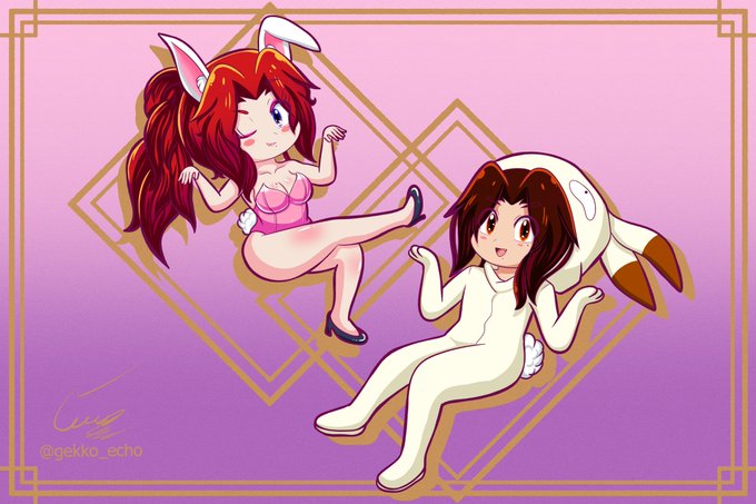 🐸 🐰 happy #bunnyear ! My OCs Gekka and Gekko are dressed up in outfits inspired by Urusei Yatsura's OVA 3, Inaba the dream maker! #ChineseNewYear #bunnysuit #art #originalcharacter #illustration #illust #digitalart #animedrawing #animedraw
