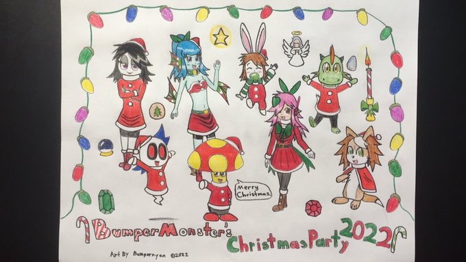 Merry Christmas everyone! The Bumper Monster’s gives you the best Christmas gift ever! 🎄🎅🏻🎁💚❤️⭐️ #BumperMonsters #illustration #Illustrator #OC #cuteart #Christmas #Christmas2022 #AnimeOC #バンパーブロック #イラスト #クリスマス
