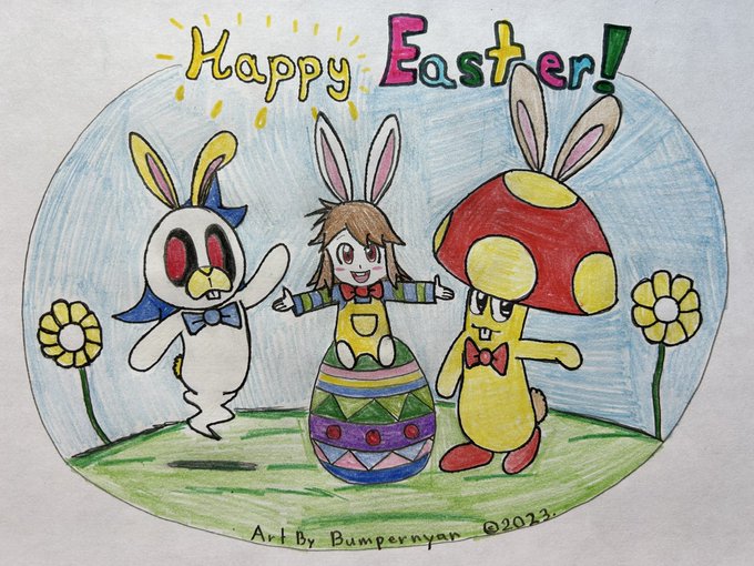 Happy Easter everyone. Today is our biggest day for our Baby bunny, who’s ready his day. Good luck finding all the eggs. 🐣 #BumperMonsters #OC #AnimeOC #cuteart #illustration #Easter #Easter2023 #バンパーブロック #イラスト