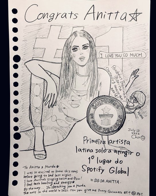 'Congrats Anitta GUINESS#1🏆✨' 🤩🙌🏻🙌🏻🙌🏻🙌🏻🙌🏻 @Anitta @murdabeatz @GWR #murdabeatz #anitta #murdagang #musicproducer #dj #beatmaker #rapper #hiphop #trapmusic #fanart #drawingaday #1日1絵 #ペン画 #お絵描き #イラスト #illustration #nft #nfts