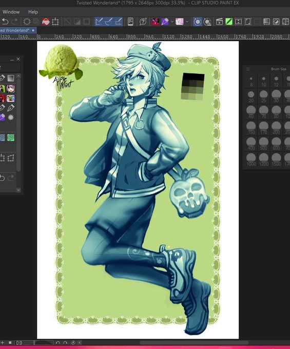 Twst Ice Cream Fashions: Apple Mint Inspired by the Apple Mint ice cream flavor, I gave Epel a cute outfit to match! Includes an alternate version w/ cooler colors. #twstファンアート #twst #AnixDraws #DigitalArt