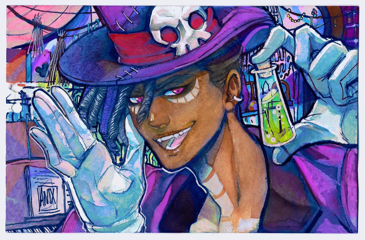 It’s thanksgiving and instead of doing anything related I drew Halloween Idia. Because according to Twisted Wonderland, it’s Halloween until December. #AnixDraws #Twst #idiashroud #watercolorart #twistedwonderland #twstファンアート