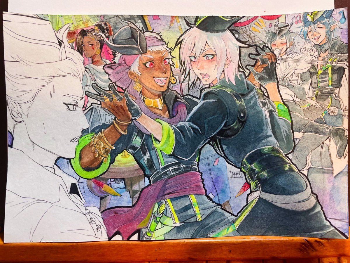 Forgot to share this here but my Diasomnia Kalim DormSwap! is finished! Made using cheap Watercolors while I was on vacation in Puerto Rico~ (bonus wip and lineart I totally didn’t repost) #AnixDraws #twstfanart #watercolorpainting #twistedwonderland #twst