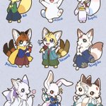 【新作】 創作「狐と猫と縁結び」シリーズのデフォルメシリーズ🦊🐱✨ 4月30日のけもケットにて、ステッカーセットと根付けキーホルダーとして頒布予定です! 初めてここまで小さくしましたので少しでも可愛いと思って頂けたらなんて願い事 #aoiartcollection