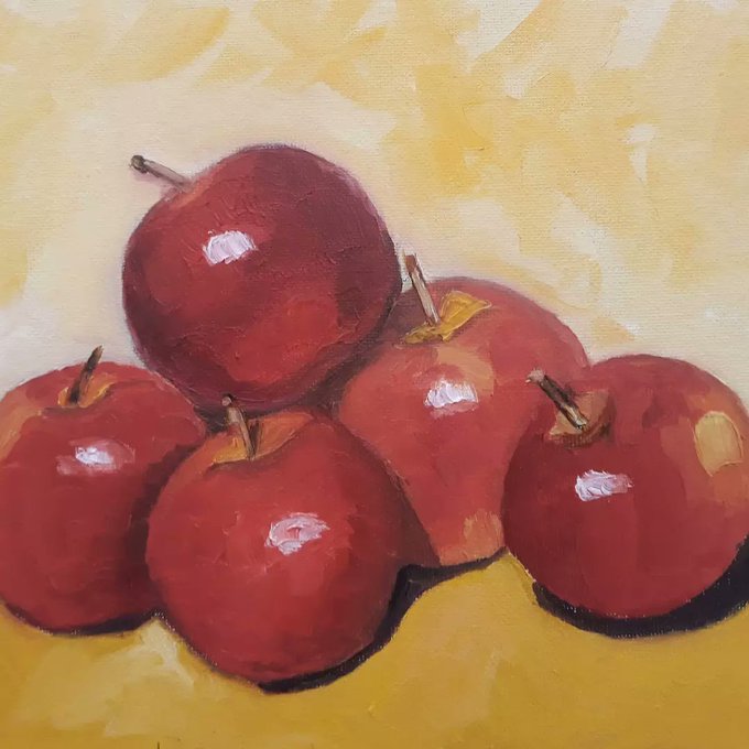'Just a couple' - Day 2 of #stradaeaselchallenge Don't forget to swipe for the progressive shots! #momswhopaint #artistontwitter #apples #applepainting #kicheninspo #fruitlover #artforsale #artvsartist #stilllifepainting #shadesofred #observationalart #artforyourwalls #creative