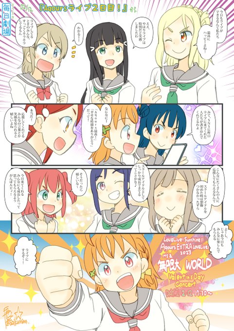 ラブライブ!サンシャイン!! #Aqours EXTRA LoveLive! 2023 ~It's a 無限大☆WORLD~ <Valentine's Day Concert>、幕間のイラストを担当させていただきました。ありがとうございます。ライブ皆さんかっこよかっ、どういう事なの #Aqoursとバレンタイン_Day1 #Aqoursとバレンタイン_Day2