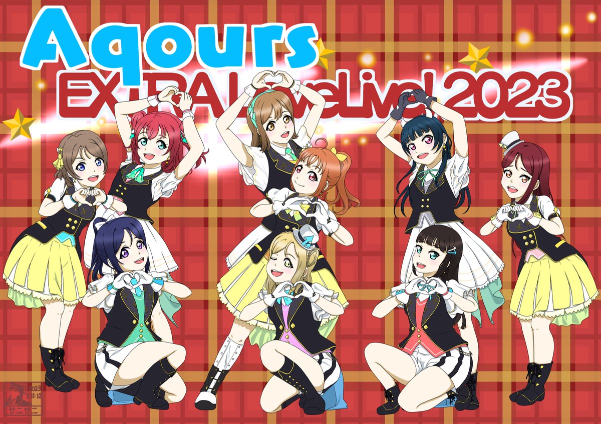 ラブライブ!サンシャイン!! Aqours EXTRA LoveLive! 2023 ~It's a無限大★WORLD~ 開催おめでとうございます🎉 やっと前進したAqoursのライブ楽しみです 🍊⛵️🌸🍭🙆♀️😈✨🐬💎 イラストリメイク #Aqours_ValentinesDayConcert #Aqours #Aqoursにエール #lovelive_sunshine #ラブライブサンシャイン