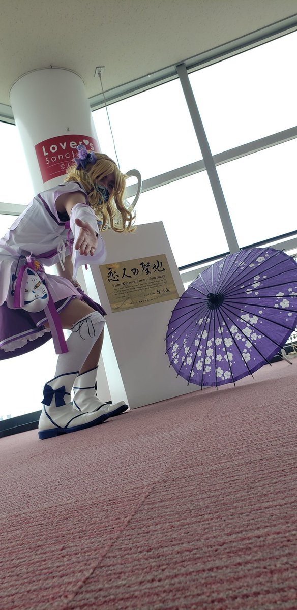 #Aqours東京ドーム 私なりの痛バッグ作成しました。 バッグ本体は使い勝手を考慮し、装飾無し 痛バッグ併せ、コス撮影等、OK どなたでも遠慮なくお声かけください。 楽しい1日にしましょう。 紫の和傘さして、未熟コスしてます。 #Aqours6th #コスプレ #Aqours_WINDY_Day2 #小原鞠莉 #痛バッグ