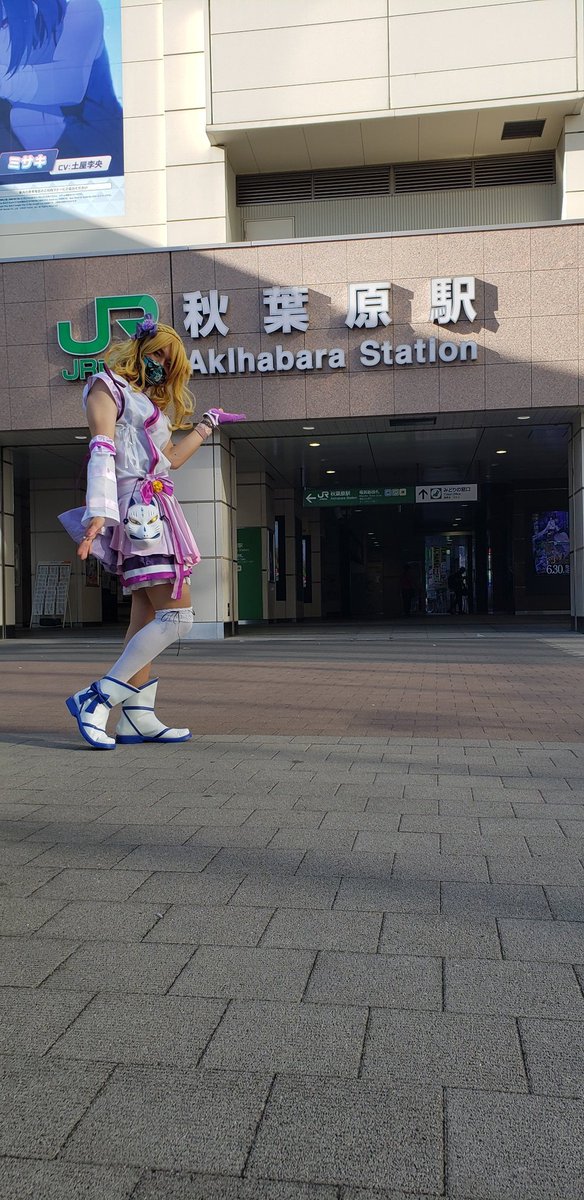 支度完了しましたので、秋葉原向かいます! たった今…1本電車を見送ったぜ!(´;ω;`) 未熟DREAMERコスプレしてます。 撮影は声掛けて貰えたら大丈夫です(๑•̀ㅁ•́ฅ✧ #Aqours_6th_WINDYSTAGE #Aqours_WINDY_Day2 #Aqours6th #Aqours東京ドーム #小原鞠莉 #コスプレ #痛バ