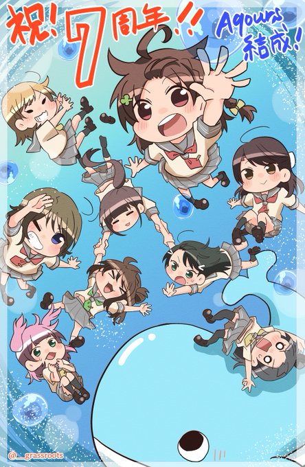Aqours7周年おめでとうございます! 🍊🌸🐬♦⚓👿💮✨🍭 どんな時でも挑戦をし続けるAqoursちゃんがめちゃめちゃカッコいいと思います! 私自身も自分なりに挑戦し続ける人間になります。 キセキヒカレ~! また元気でお会いできる日を楽しみに生きるぜ! #Aqours #Aqours7周年 #Aqours結成7周年
