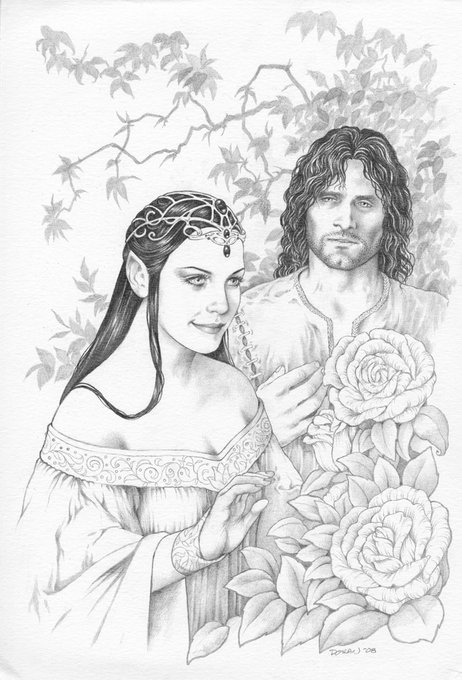 Another one of my older Lord of the Rings drawings. This was a private commission of Aragorn and Arwen, from the films, obviously. Pencil #lordoftherings #aragorn #arwen