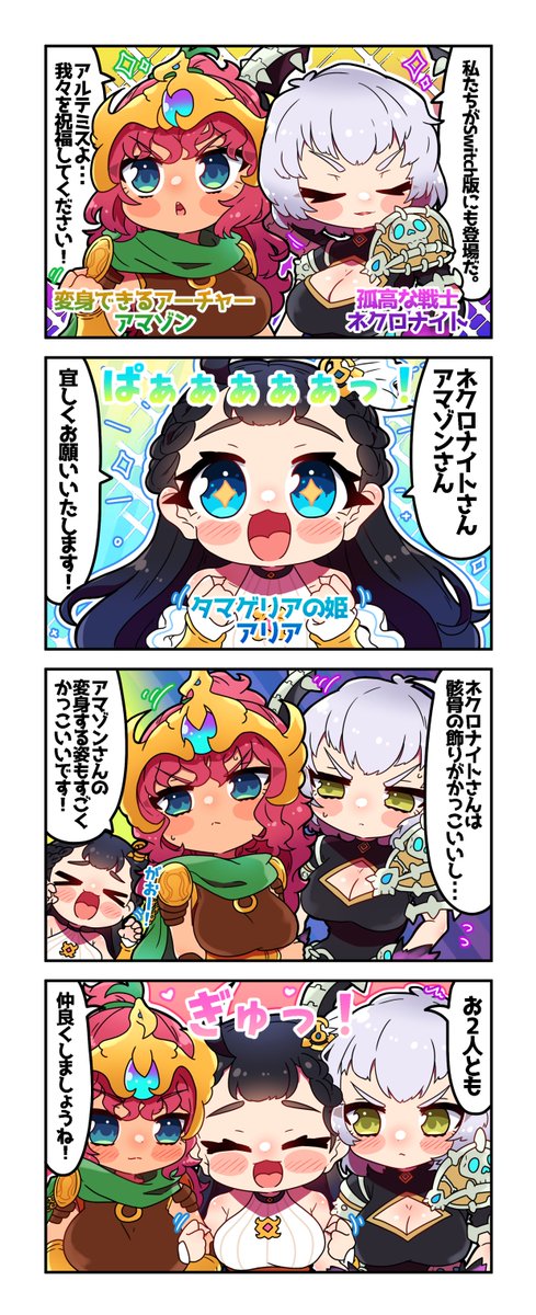 【お仕事告知】CREST様から発売されておりますRPGゲーム「アリアクロニクル」の追加キャラクター記念という事で公式4コマ漫画描かせていただきました🥰‼️ アマゾン&ネクロナイト、ついに登場…!🐅☠️ ▽予約受付中!▽ store-jp.nintendo.com/list/software/… #AriaChronicle #大型アップデート実施