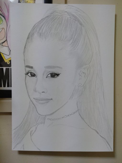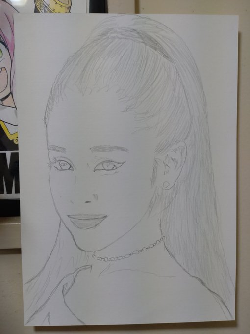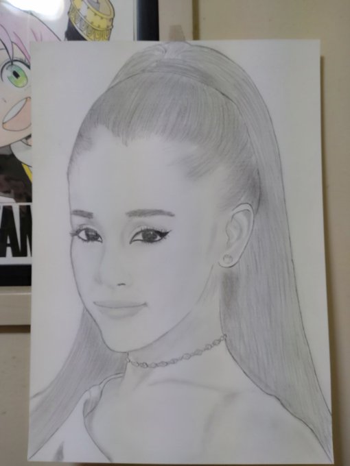 #アリアナ・グランデ #ArianaGrande #人物画 #鉛筆画 #イラスト #イラスト好きな人と繋がりたい #Illust #illustration #portrait アリアナ・グランデ 第2弾完成 今回はバックに水性ペン入れてみた
