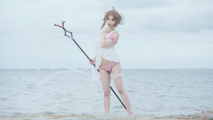 遲來的比基尼 (• ▽ •;) 風好大~ Photo by @AkinaYume #ビキニの日 #明日方舟 #羽毛筆 #Arknights #arknightscosplay #アークナイツ #cosplay #cos #coser #cosplayergirl
