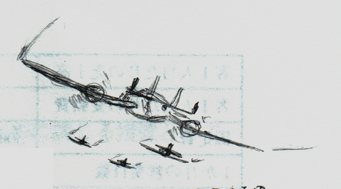 #架空機 #イラスト #Arseleia_H 名称 Sidjzéila(シゼイラ) 種別 重爆撃機 設計 教邦航空機製造(ANAM) 旋回時間 16秒 上昇速度 5.7m/s 離陸距離 600m 最高高度 8600m 最高速度 420km/h (高度 600m) 航続距離 2600km 乗員 9名 →