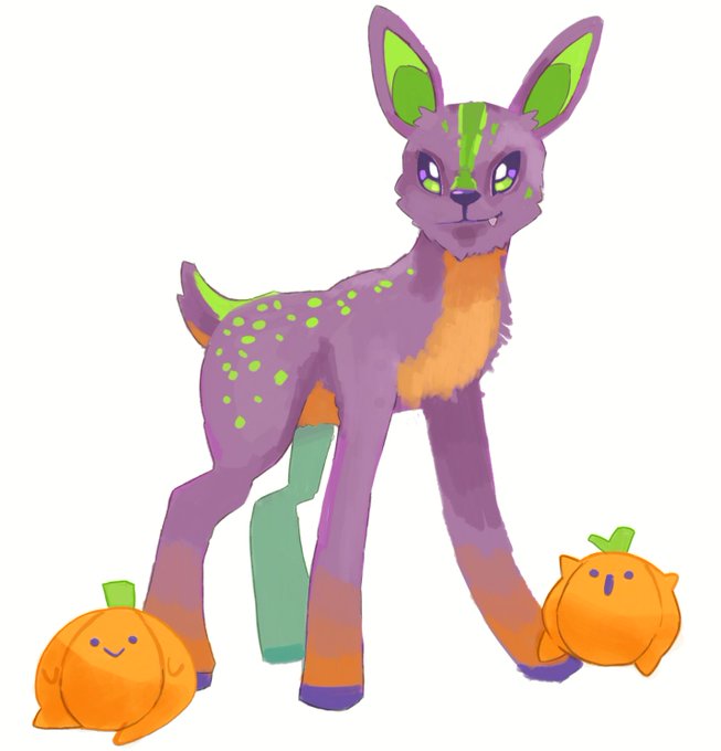 Here is my submission for this weeks @ArtClubIE, the prompt this time was Samhain so I decided to draw a couple of spooky creatures Its a werefaun that grows into a were-elk, and also some pumpkin things for scale #ArtClubIE