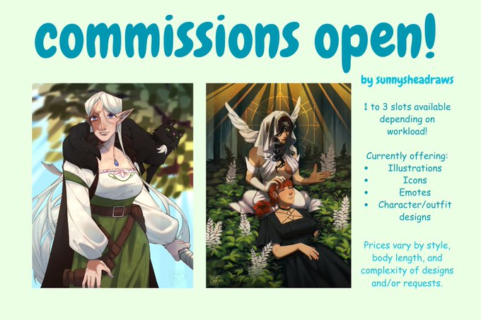 hello art twt, my commissions are open! i can draw fanart and OCs in my style, examples in this thread :D likes & RTs are appreciated <3 t. art commissions open slots sketch comm sheet bump looking for artist artshare artwork #artcommissions #commissionsopen #ArtistOnTwitter