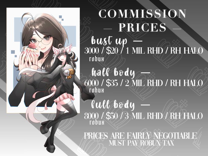 NEW COMMISSION SHEET ;; i've raised my prices since an artwork takes several hours to finish. #ArtCommission #artcommissions #artmoots #royalehighcommission #robloxartcommission #ArtistOnTwitter