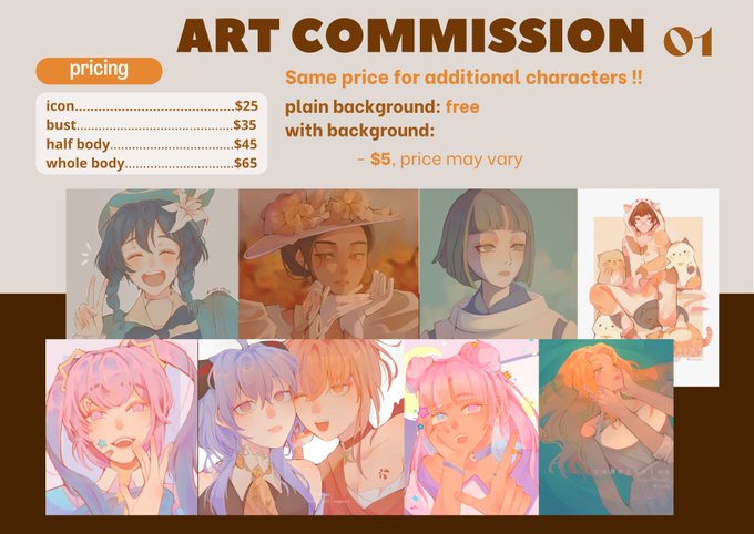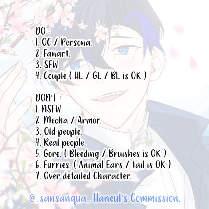 ✦RT, like & share are very appreciated✦ COMMISSIONS OPEN! Price list : • Shoulder-up 75k • Bust-up 105k • Waist-up 135k • Knee-up 165k More info : sansanqua.carrd.co Dm me if interested, thank you! ✉ #artcommissions #commissionopen #zonakaryaid #artidn @CmsnArtist_Id