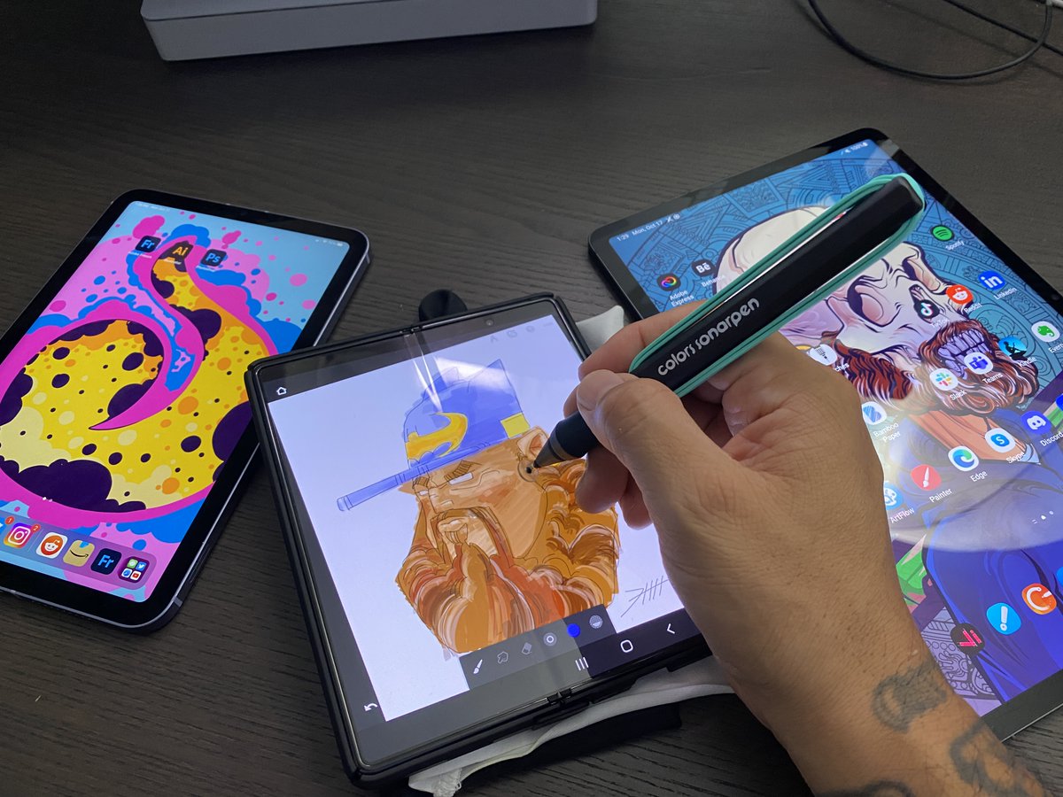 I was testing out the #colorsonarpen on TabS8, iPad Mini 6, iPhone 11 and Z Fold 2 and it worked without even plugging it in! No Pressure Sensitivity, but @colorslive_ is now my favorite drawing pen beyond the @NintendoAmerica Switch! #ArtLifeAllDay #DTM #illustration #drawing