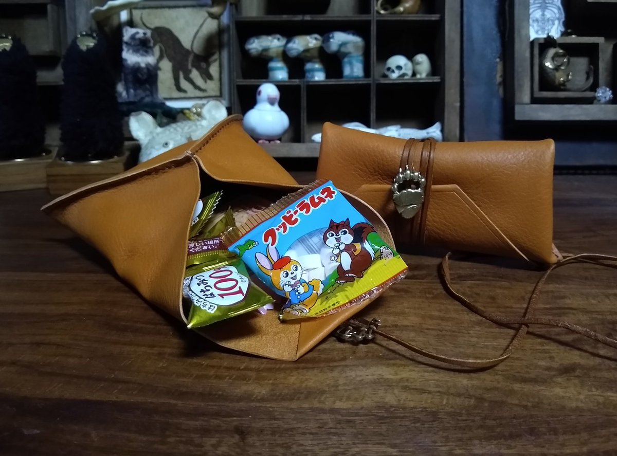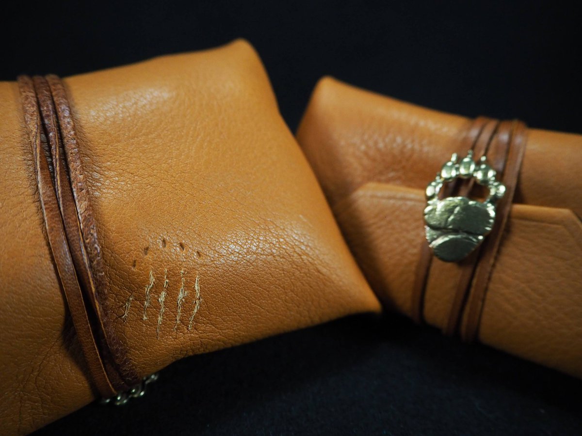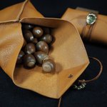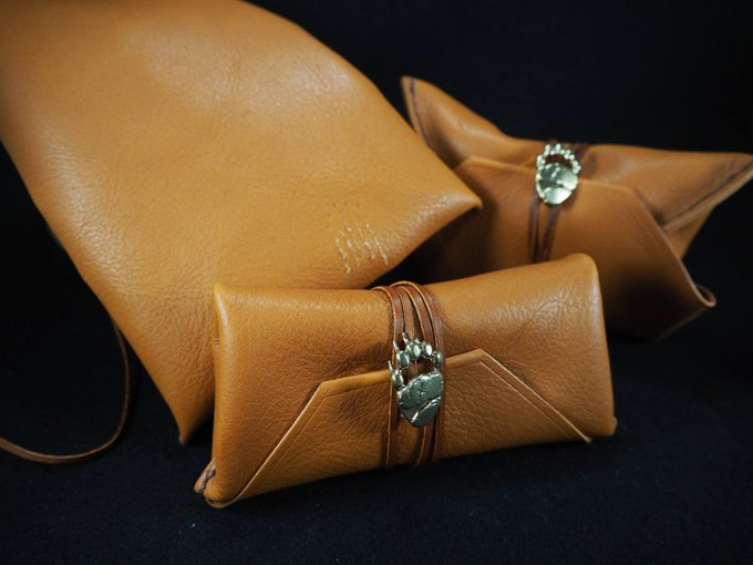 ツキノワグマの冬眠袋、出来ました。 柔らかい革を使ったので中にたっぷり入っているドングリの膨らみがモリモリと伺えます。 餌を探しに来たクマの爪痕付き。 中身が少なめで細く巻いた時は爪痕が隠れます。 人間のオヤツ袋にも。 まずは6/18,19のイベントに連れていきます。 #artmachimuseum22