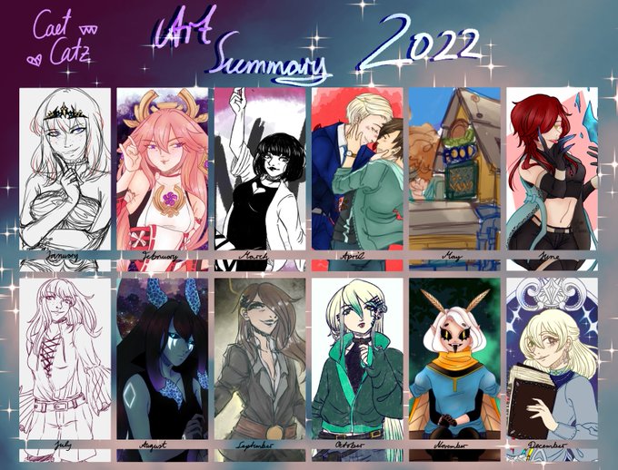#Artsummary2022 #Artsummary It was hard finding something for every month since 2022 was a bit of a slow year after a certain point. Let's hope 2023 will turn out better! I wanna learn so much this year ><