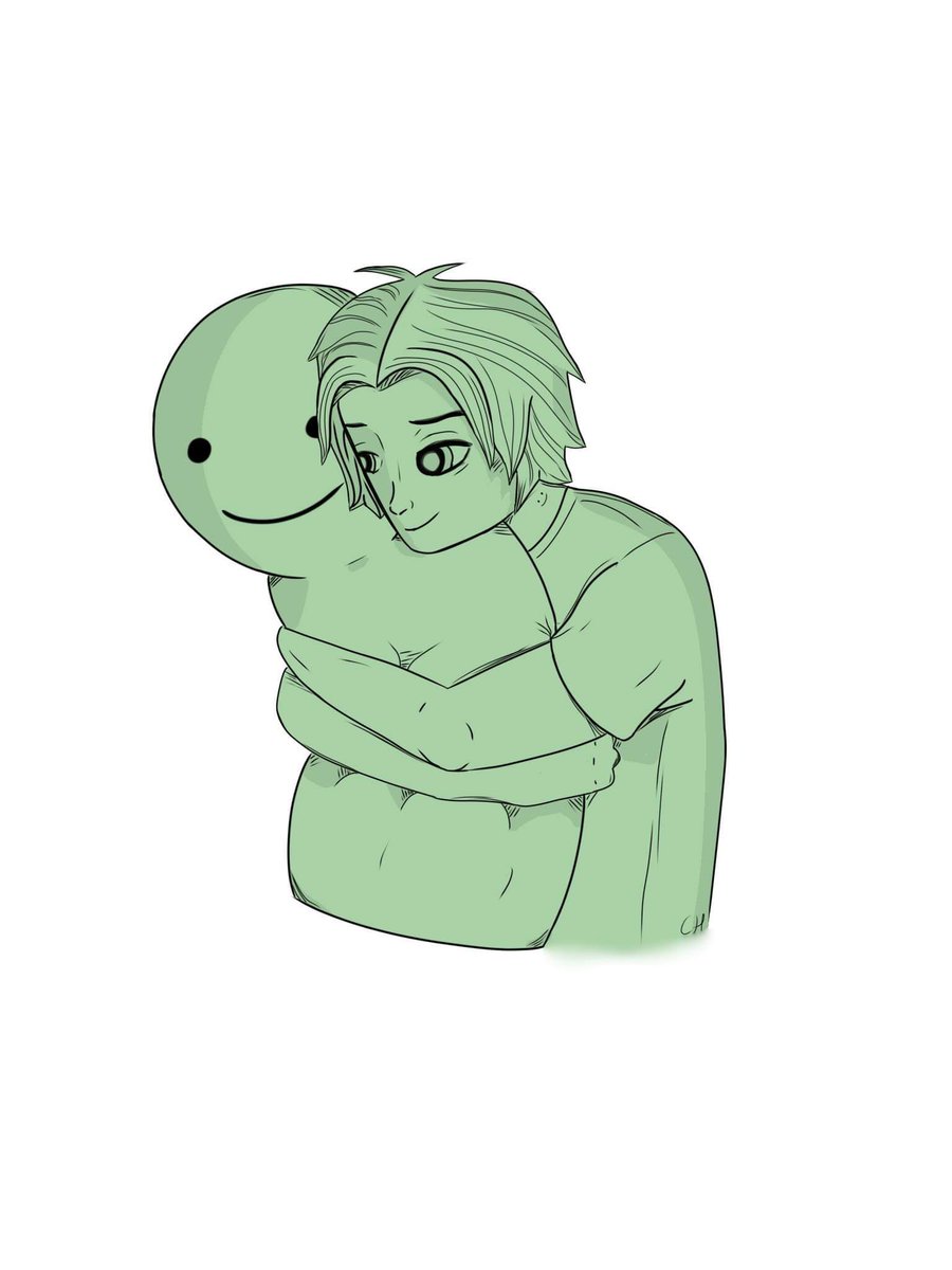 Day 1 of 3rd #ArtWeek! Quick sketch of Dream and blob :) #dreamfanart #dsmpfanart twitter.com/ChickenCarol…