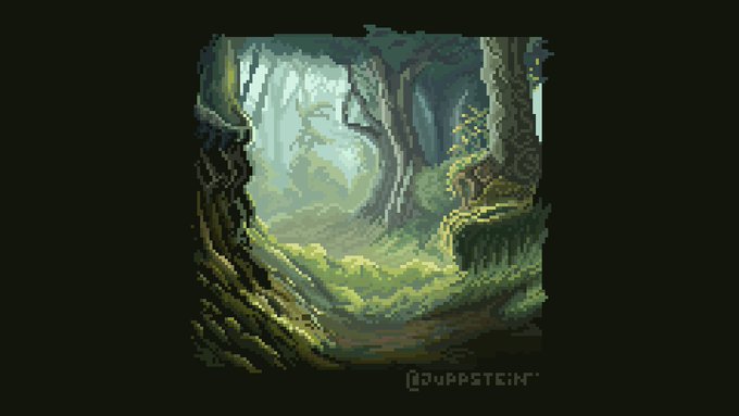 "Text Prompt Forest" Reference is output from #artificial art generator Stable Diffusion. So we bring prompt based output back into the artistic realm by creating something from it 🤘🏽 (1/2) @Pixel_Dailies #pixelart #pixel_dailies #ドット絵 #Pixaki
