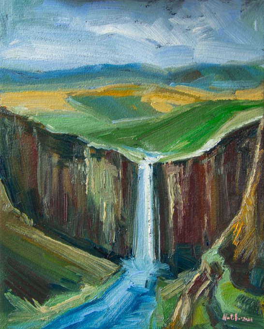 The result of 20 minutes of painting on primed cardboard to avoid getting stuck. 2021. I was just relaxing. #waterfall #oiloncardboard #Oil #artshare #ArtistOnTwitter #ArtofLegends #artwork #artist #ArtsOfAshes #artistsontwitter #arte #artvsartist #Artist100