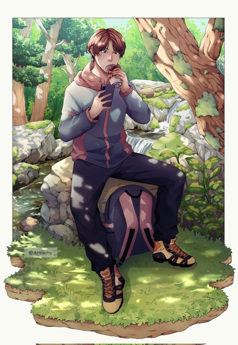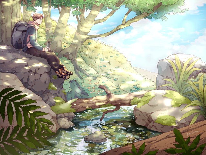 Flouna lagi jalan-jalan, nyari sungai di hutan buat bersantai. Bikin artwork BG full alam begini, ini karena creatornya butuh jalan-jalan 😓☝ #artleita_OC #ArtistOnTwitter #illustration #art #OC